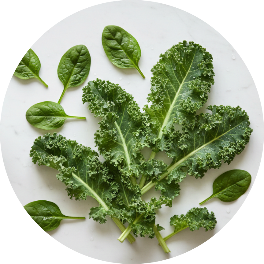 Nutrient-dense greens like spinach and kale to support immunity, digestion, and everyday wellness.